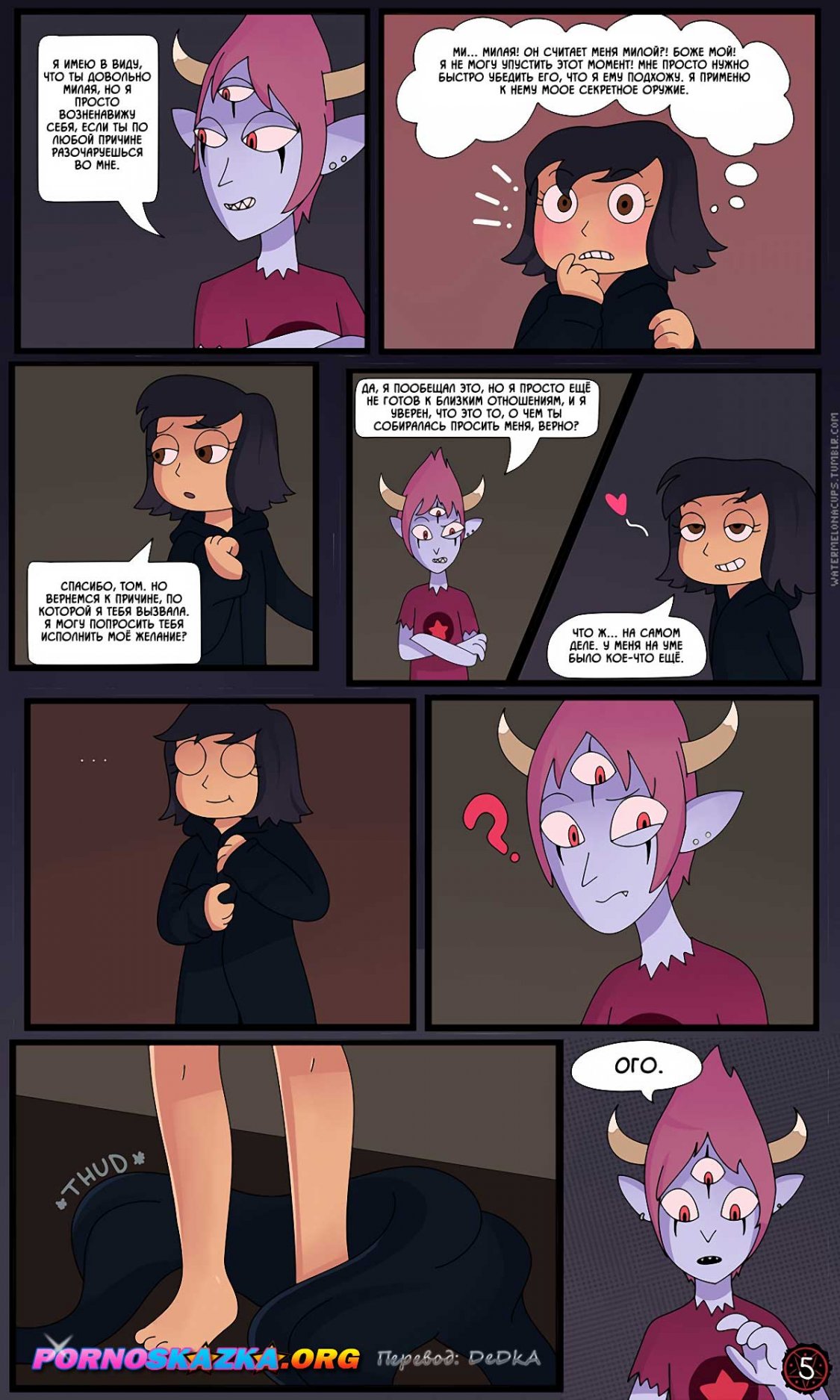 С большой радостью сообщаем, что сайт pornoskazka9.org разрешили опубликовать на нашем сайте их перевод этого отличного комикса. Просим поддержать данный сайт своей подпиской!!! Девушка прикоснулась к существу, чтобы хорошо с ним потрахаться. Он сначала начал вылизывать девушки письки, а потом они начали ебать друг друга. Ему явно было чем удивить ее.
