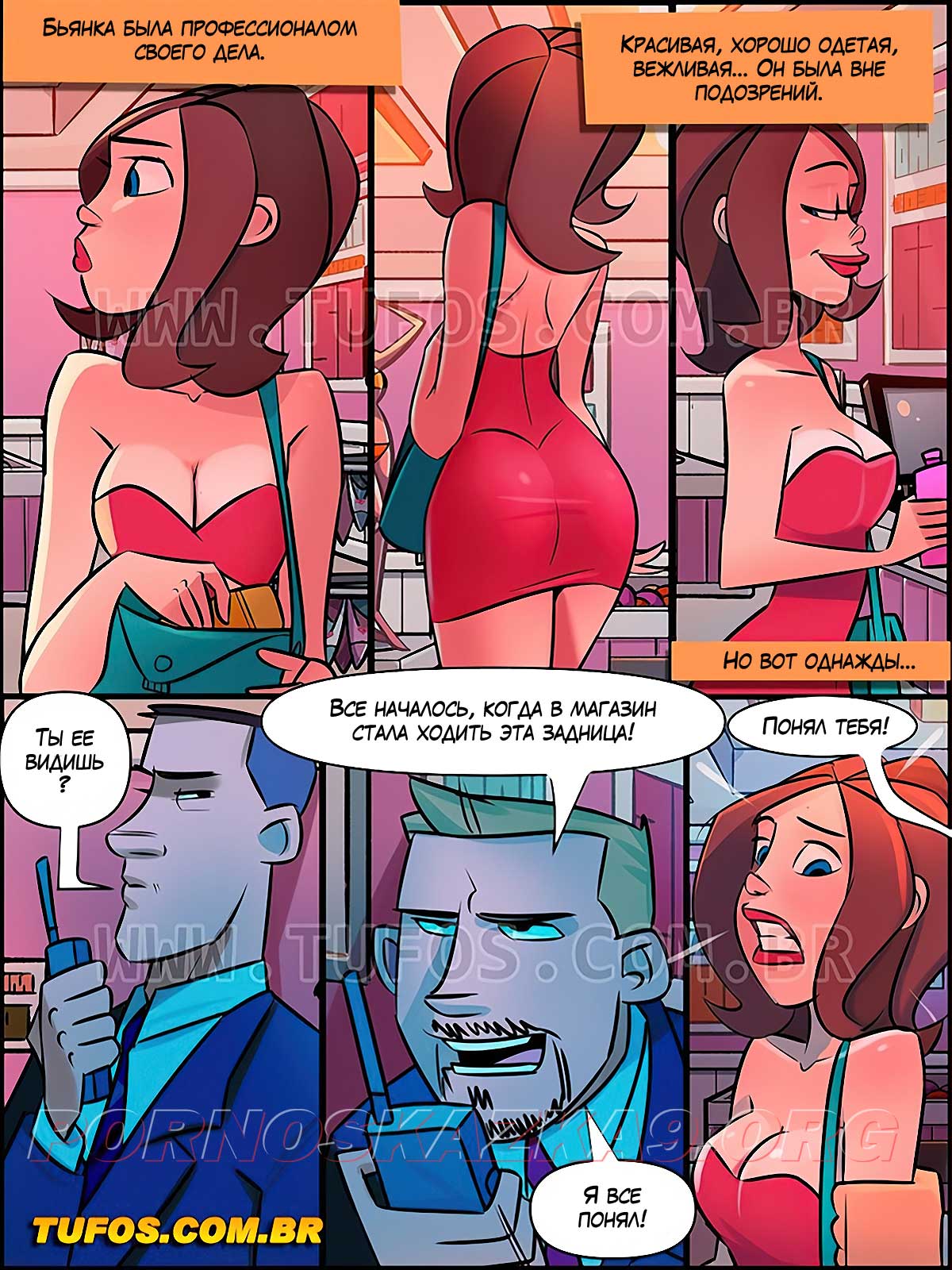 Порно комикс Дом мамы Жоаны 5: Душ в магазине. Девушка любит ходить по магазинам, но не любит платить за вещи, он их просто ворует. Не смотря на то, что