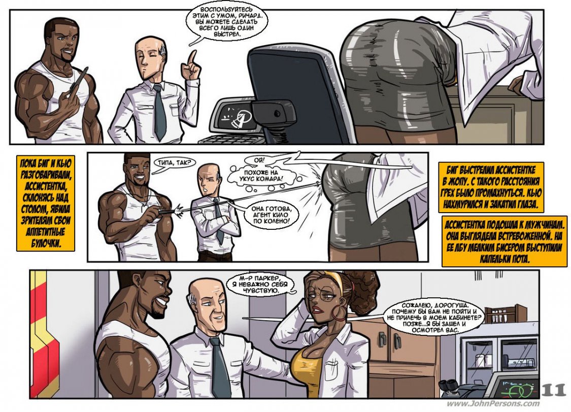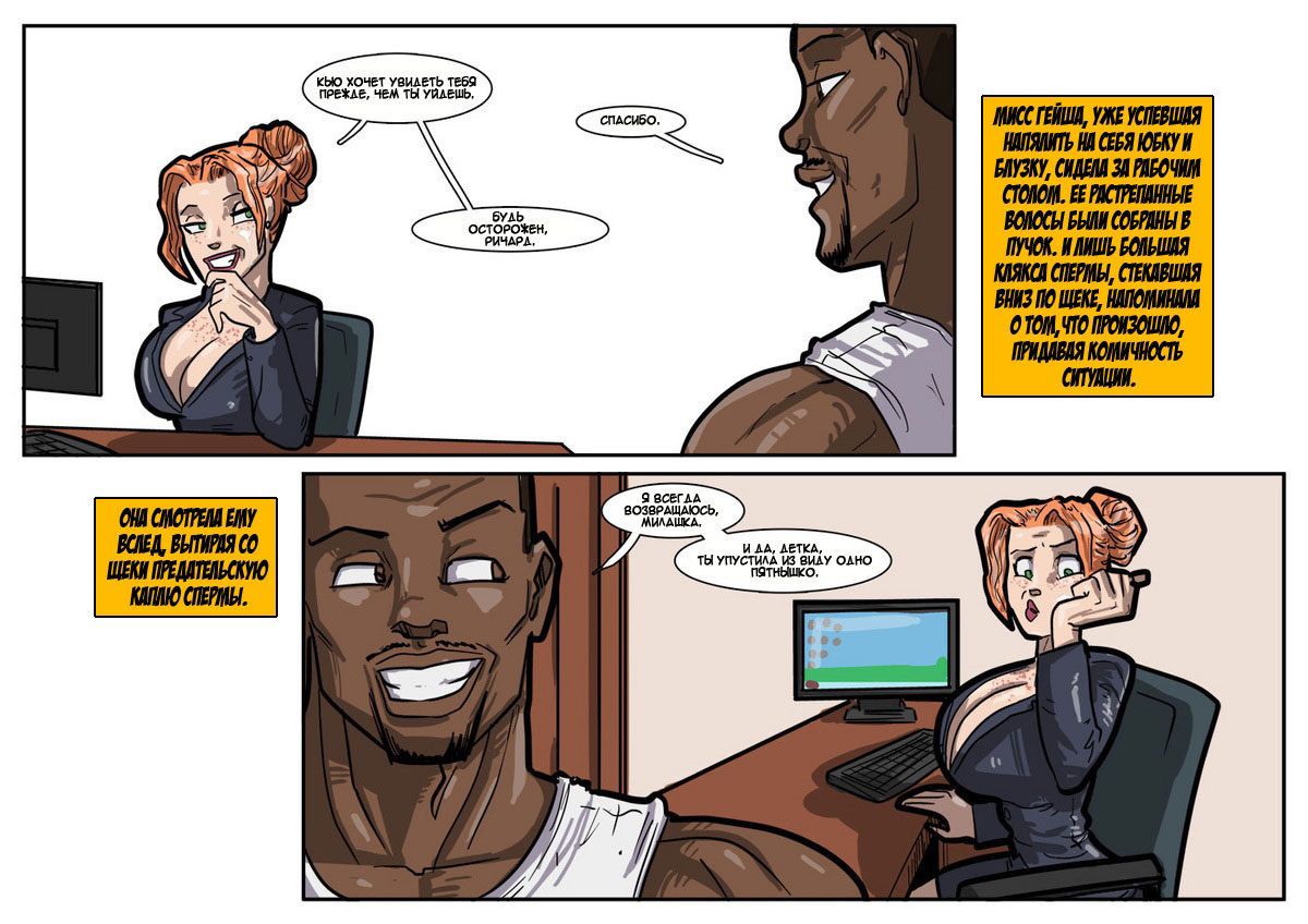 Работая в департаменте безопасности, чернокожий громила Ричард пользуется в компании особенным спросом. Кроме того, что он - лучший боец, он еще и классный любовник. Захаживая к секси секретарше в кабинет, чтобы круто с ней пошалить на столе, негр не знал, что начальница департамента установила камеру в каждом кабинете. Когда сучка вызывает его к себе и посылает на важное занятие, Ричард, попав на тайную базу противника, чтобы победить, потрахивает свою главную противницу.