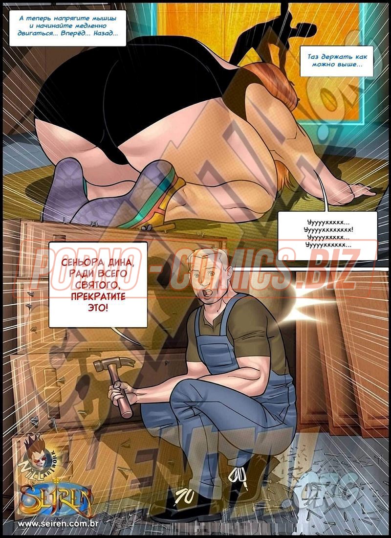Ух и семейка! - муж изменяет на работе пока жена соблазняет рабочих в тренажерке в комиксе "Спортсменка 5 часть 1 из 3"