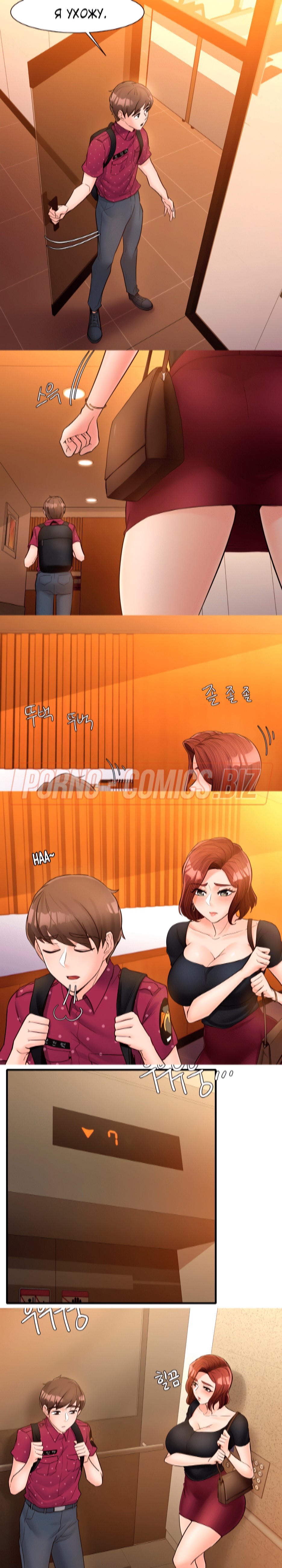 Пышногрудая и очень сексуальная училка из 15 главы комикса "Общественные интересы" так влюбилась в одного парня, что ни дня не может о нем не думать. Однако, сегодня развратник решил пропасть, из-за чего учительница чувствует себя одиноко. Оказавшись в лифте вместе с охранником, училка решает пригласить его к себе домой. Пока она решалась на такой смелый шаг, молодого охранника увела молоденькая телочка.