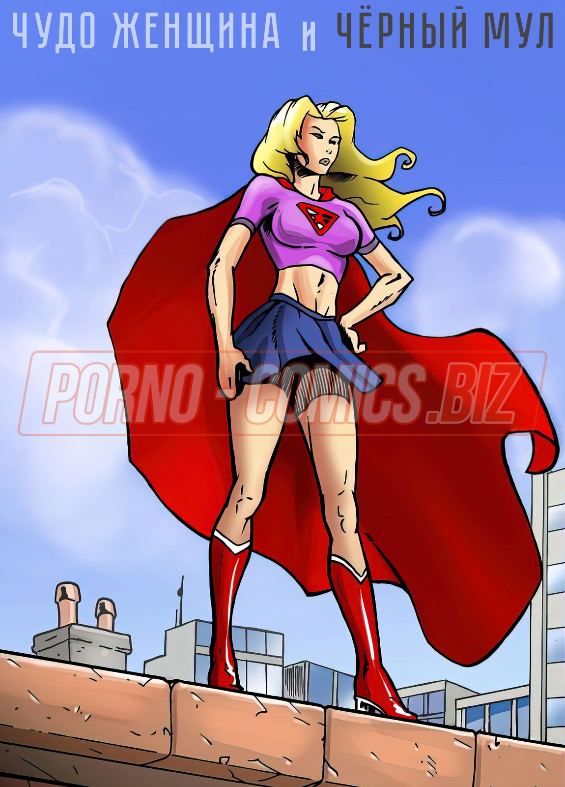Смотрите секс комикс «Чудо женщина и Черный мул», где развратная супер-героиня, увидев как зловещая банда грабит очередной банк, решает им помешать. Красотка с пышным бюстом приказывает мужикам остановится, не зная того, что у них есть против нее оружие. Взяв под свой контроль разум Чудо женщины, Черный мул хочет, чтобы она разделась и, отсосав каждому член, дала ебать себя в киску.