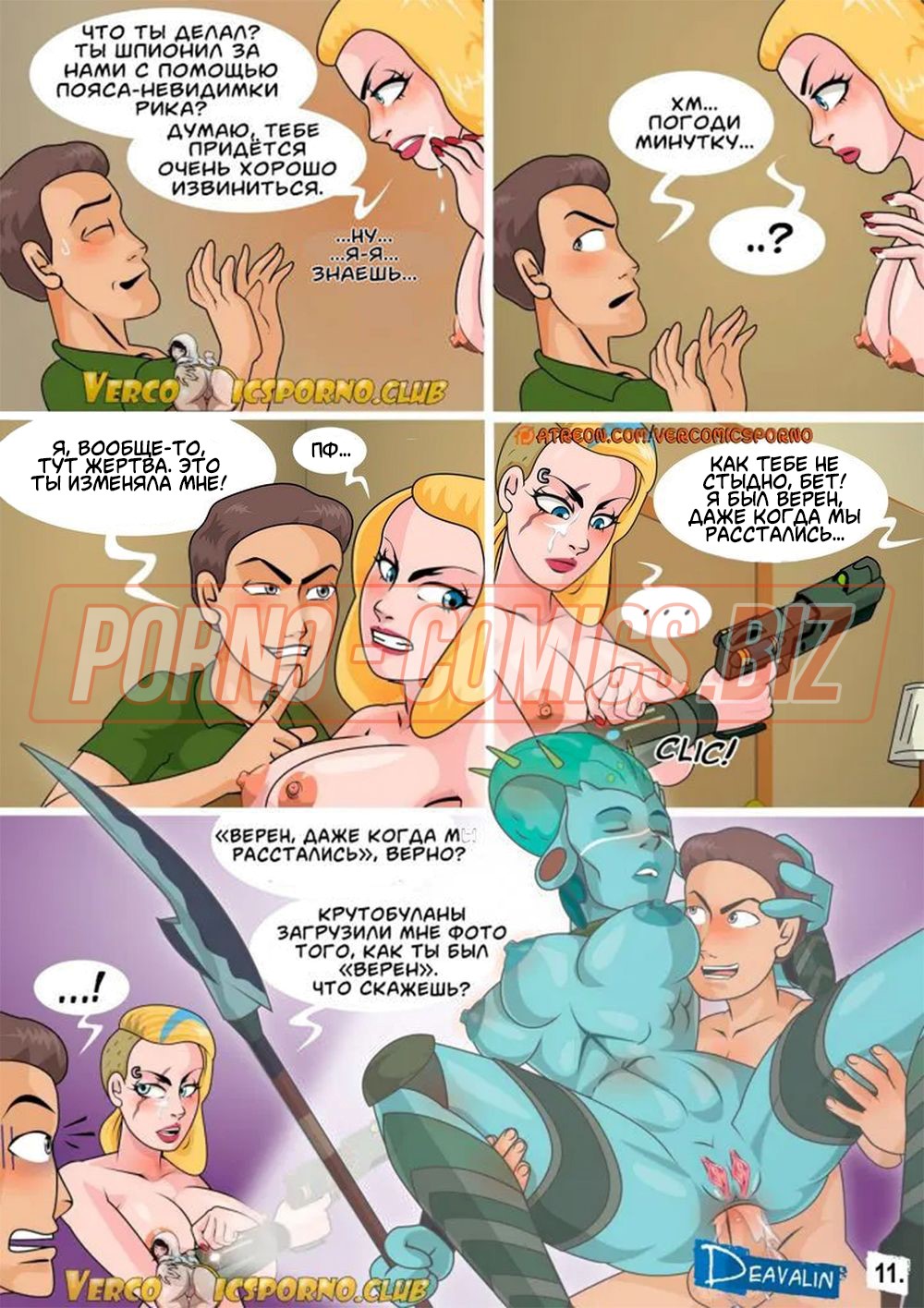 В порно комиксе "Рик и Морти. Бет и Бет", наконец-то встретились две совершенно одинаковые грудастые милфы. Придя в лабораторию к ученному, малышка с желтыми волосами и большими сисечками встречает свою милф-копию. Познакомившись с близняшкой, телочка в шоке. Когда копия предлагает не терять времени зря, а устроить лесбийский секс, оригинал совсем не против подобных шалостей.